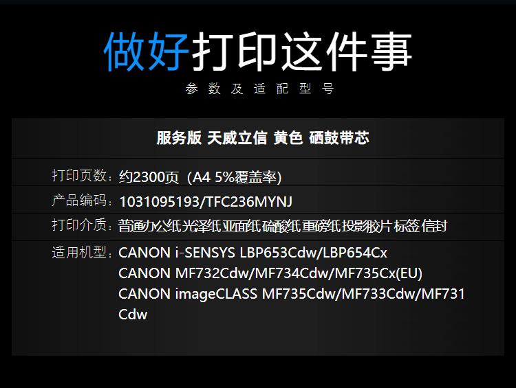 立信 CRG-046 硒鼓帶芯片天威立信裝(TFC236MYNJ) 2300頁 黃色 適用于CANON i-SENSYS LBP653Cdw/LBP654Cx CANON MF732Cdw/MF734Cdw/MF735Cx(EU) CANON imageCLASS MF735Cdw/MF733Cdw/MF731Cdw CANON Color imageCLASS LBP654Cdw(USA) CA