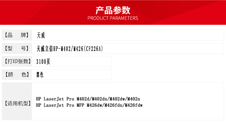 立信 CF226A 硒鼓帶芯片天威立信裝(TFH102BYNJ) 3100頁 黑色 適用于HP LaserJet Pro M402d/M402dn/M402dw/M402n HP LaserJet Pro MFP M426dw/M426fdn/M426fdw