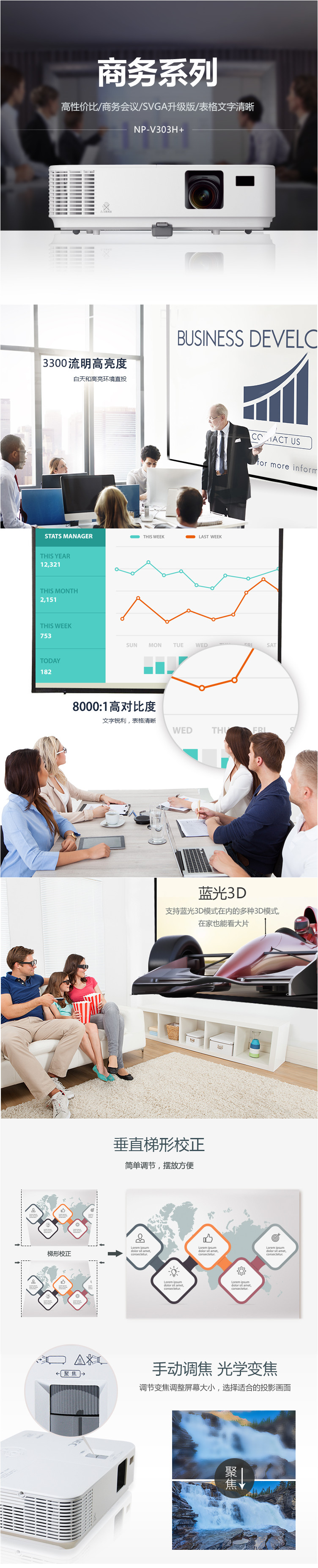 • 商品名稱:日電(NEC) NP- V303H+ 高清投影儀 1080P 3300流明 單片DLP 3D