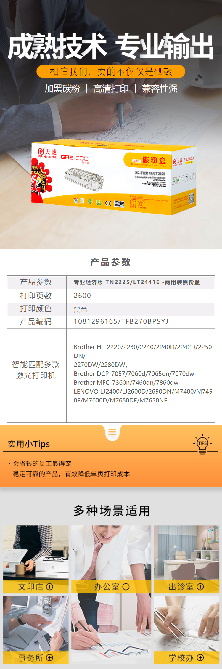 - 商品名稱:立信 TN2225 粉盒 天威立信裝(TFB251BYNJ) 2600頁 黑色 適用于Brother HL-2220/2230/2240/2240R/2240DR/2240A1/2242A1/2250DN/2250DNR/2270DW/2275DW/2280DW, MFC-7240/7360/7360N/7360NR/7362N7460DN/7470A1/7860DW/7860DN/7860A1