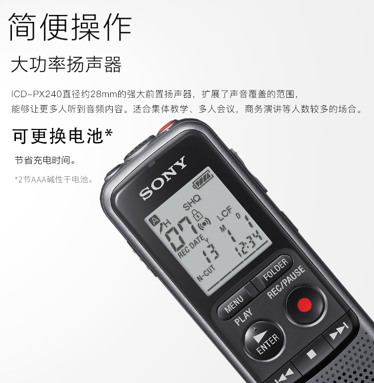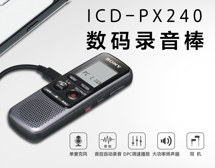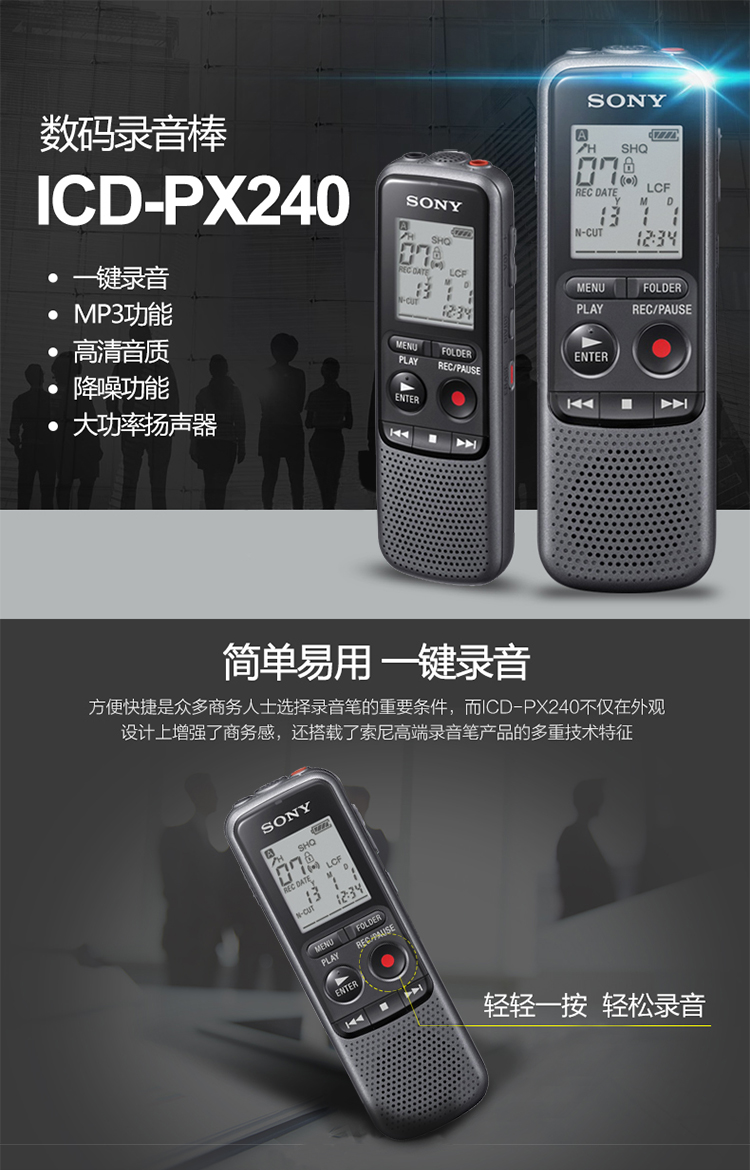 索尼(SONY)專業(yè)數(shù)碼錄音筆 ICD-PX240 4G 智能降噪可監(jiān)聽 支持音頻線轉(zhuǎn)錄 適用商務(wù)學(xué)習(xí)采訪