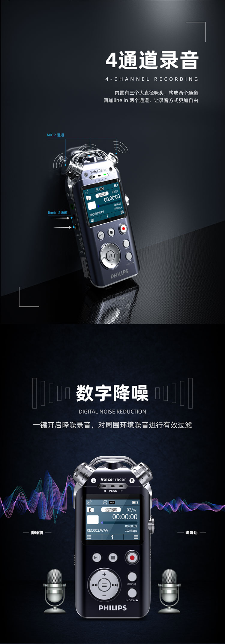 • 商品名稱:飛利浦(PHILIPS)VTR7800 16G 錄音筆 4通道高清降噪遠(yuǎn)距離錄音 文件編輯 變速播放