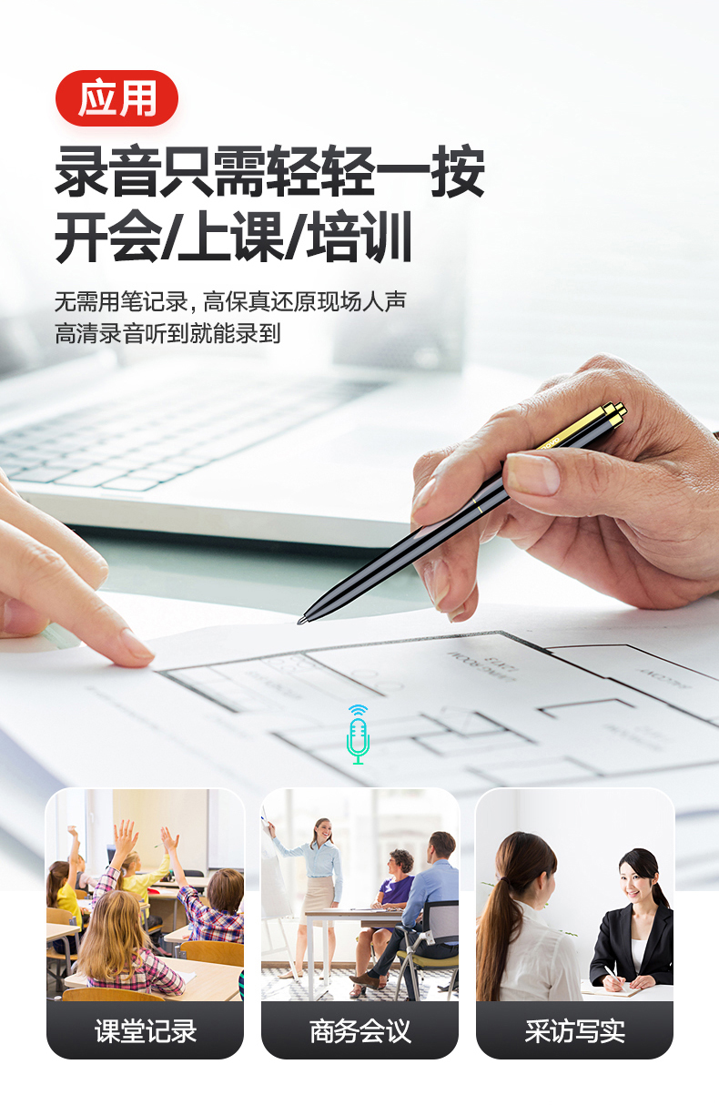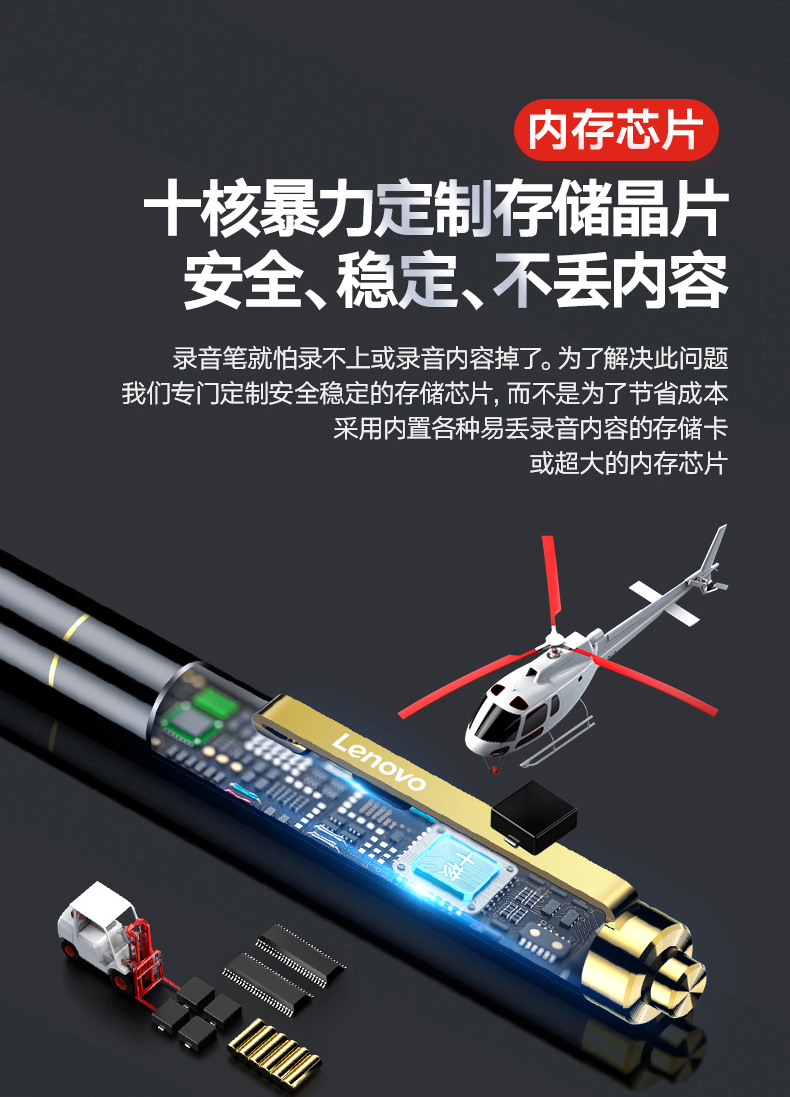 聯(lián)想(Lenovo)筆形錄音筆B628 16G智能專業(yè)微型高清遠距降噪便攜迷你 錄音器 學習培訓商務會議采訪