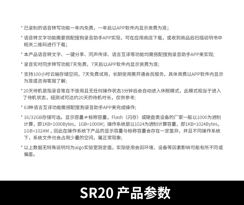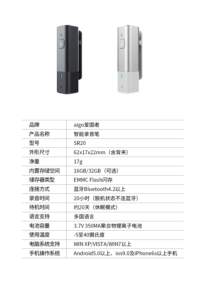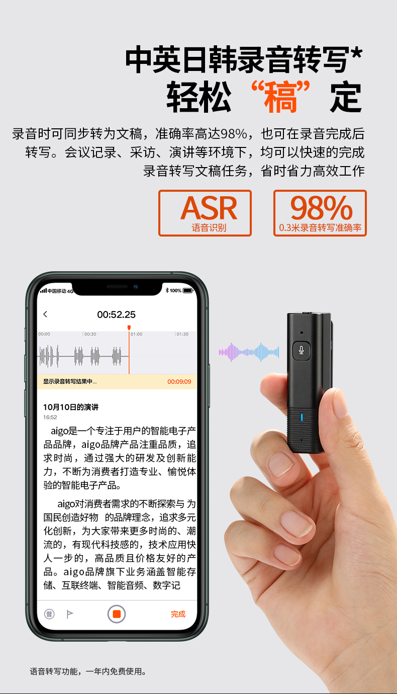 • 商品名稱:愛國者(aigo) AI智能錄音筆SR20高清錄音語音轉(zhuǎn)文字16G 一年免費轉(zhuǎn)寫 同聲翻譯錄音速記