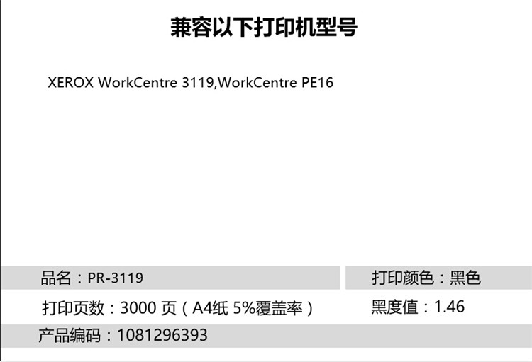 • 商品名稱:天威 3119 硒鼓帶芯片商用裝(TFX330BPSYJ) 3000頁 黑色 適用于XEROX WorkCentre 3119,WorkCentre PE16