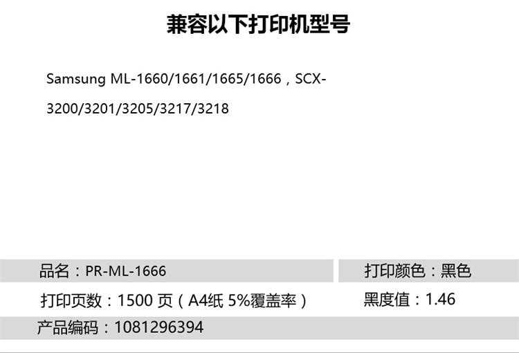 • 商品名稱:天威 1666 硒鼓帶芯片商用裝(TFS464BPSYJ) 1500頁(yè) 黑色 適用于Samsung ML-1660/1661/1665/1666,SCX-3200/3201/3205/3217/3218