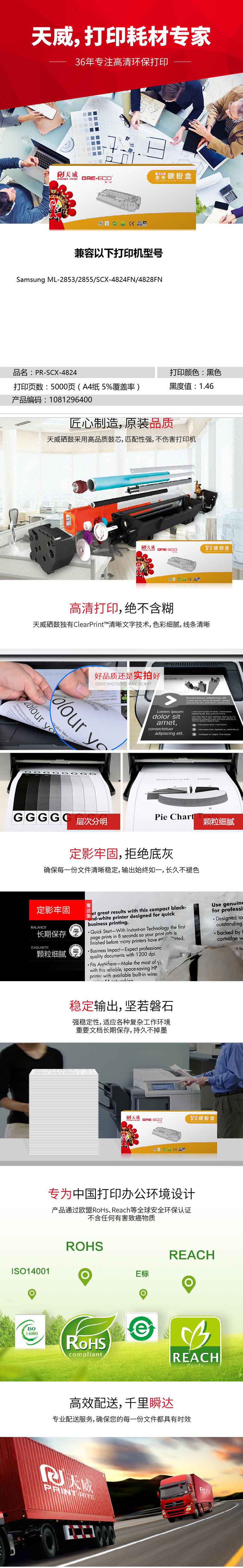 • 商品名稱:天威 SCX-4824 硒鼓帶芯片商用裝(TFS507BPSYJ) 5000頁 黑色 適用于Samsung ML-2853/2855/SCX-4824FN/4828FN