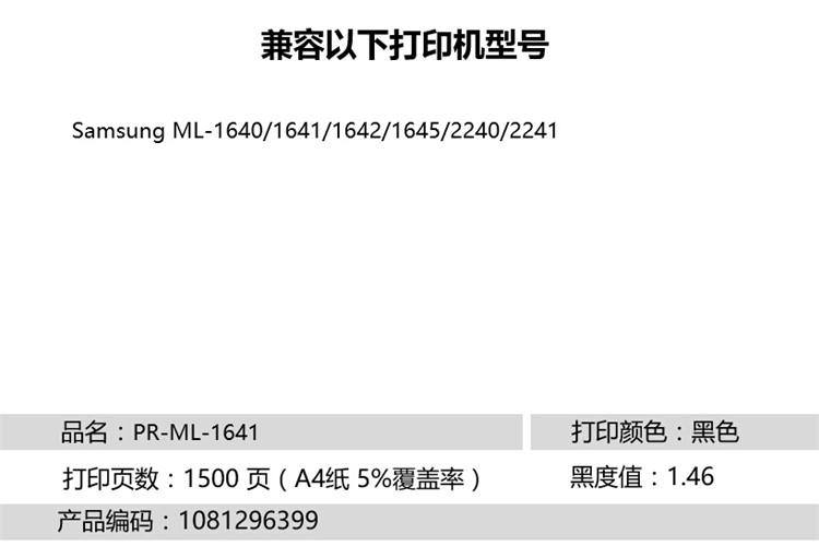• 商品名稱(chēng):天威 ML-1641 硒鼓帶芯片商用裝(TFS508BPSYJ) 1500頁(yè) 黑色 適用于Samsung ML-1640/1641/1642/1645/2240/2241
