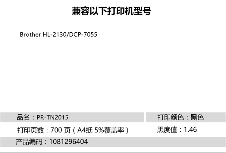 • 商品名稱:天威 TN2015 粉盒商用裝(TFB278BPSYJ) 700頁 黑色 適用于Brother HL-2130/DCP-7055