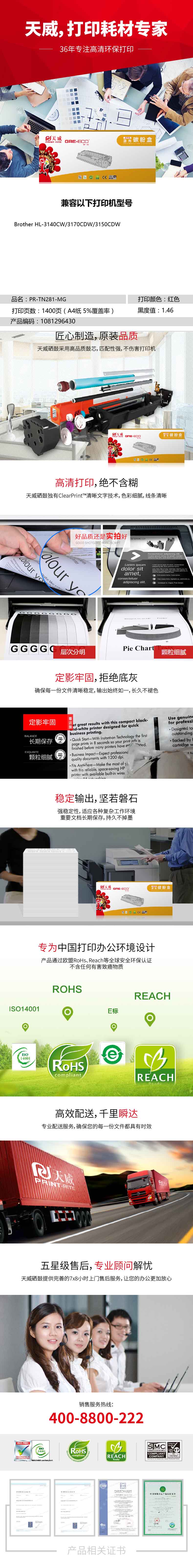 • 商品名稱:天威 TN281 粉盒商用裝(TFB297MPSYJ) 1400頁 洋紅色 適用于Brother HL-3140CW/3170CDW/3150CDW