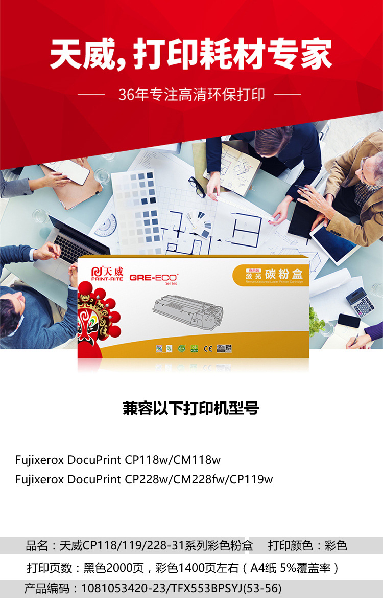 天威 CP118/119/228 黑色粉盒帶芯片商用裝 印量約2000頁(yè)