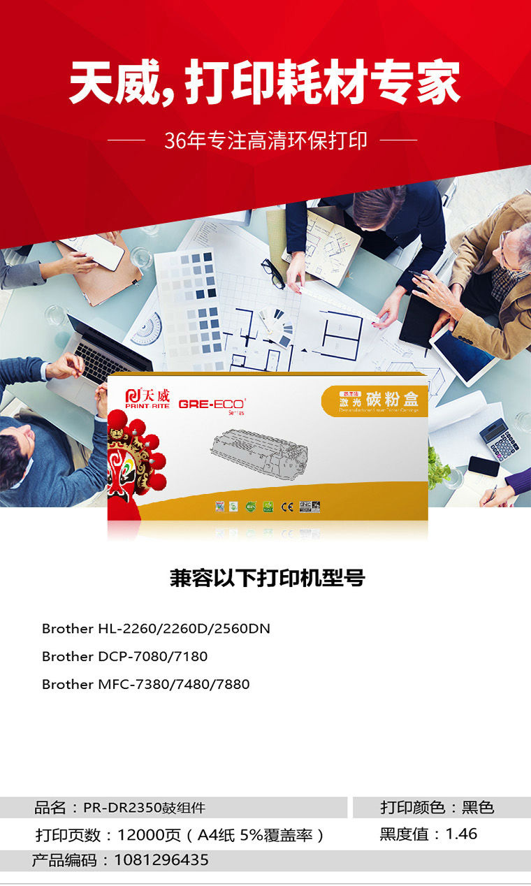 • 商品名稱(chēng):天威 DR2350(TFB437BPSYJ) 黑色鼓組件商用裝 印量約12000頁(yè)