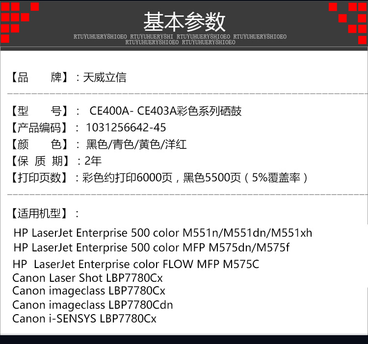 • 商品名稱:天威立信 CE400A(TRHE38BYNJ) 黑色硒鼓帶芯片 印量約5500頁