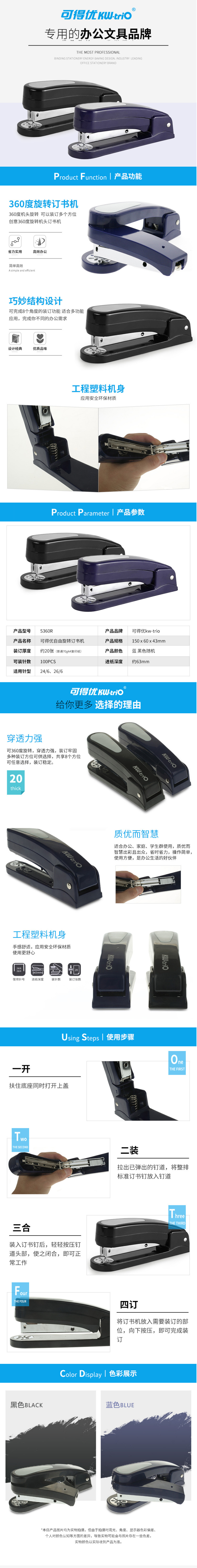 • 商品名稱:可得優(yōu) 5360R可旋轉(zhuǎn)式訂書機(jī) 適配12號24/6標(biāo)準(zhǔn)訂書釘