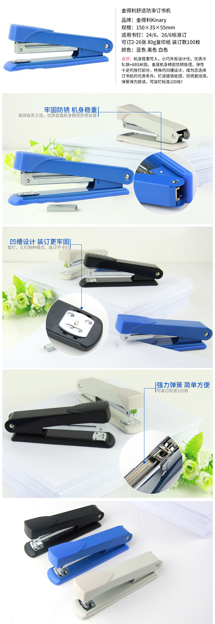 • 商品名稱:金得利(KINARY)OS2022經(jīng)典商務(wù) 耐用型訂書機 適用24/6及26/6訂書針(12#)