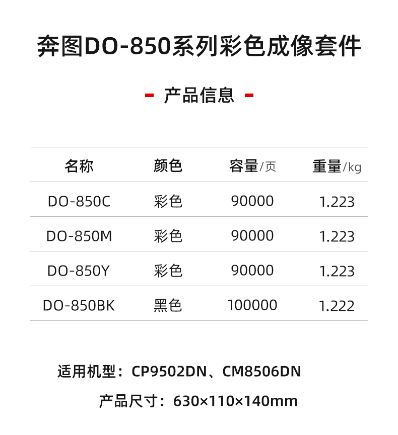• 商品名稱:奔圖(PANTUM)DO-850M 紅色成像套件 印量約90000頁
