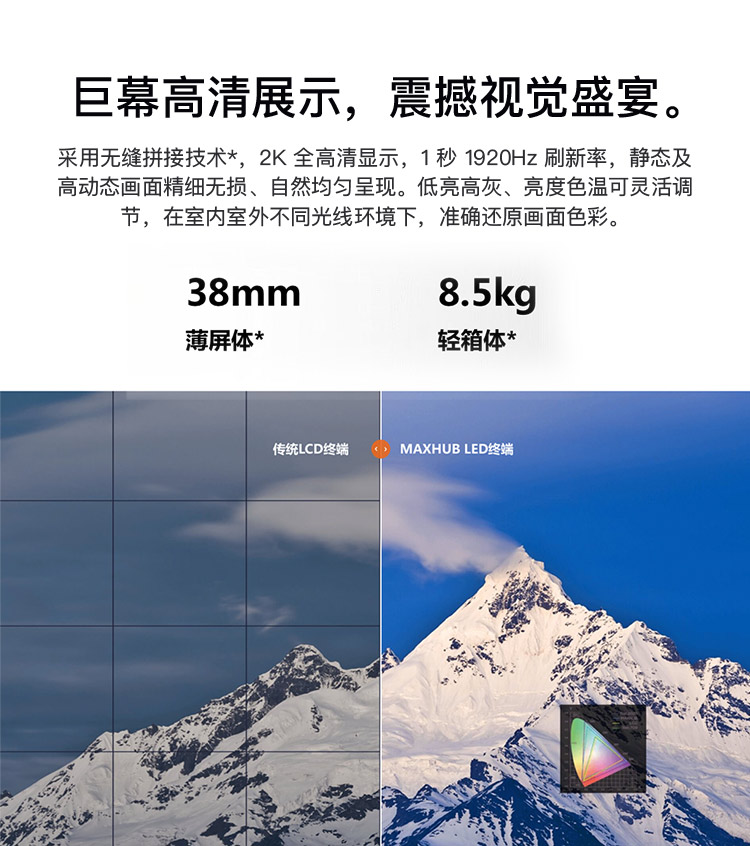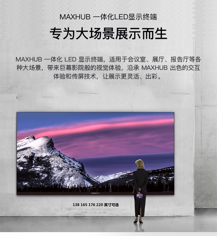 MAXHUB LM110E07 2453*1502mm大屏顯示器MAXHUBLED一體機(jī)LM110M07,點(diǎn)間距1.27mm,整機(jī)尺寸2453*1502mm,分辨率1920*1080;全前維護(hù),無風(fēng)扇設(shè)計(jì)、零噪音,內(nèi)置安卓系統(tǒng),無線傳屏,內(nèi)置歡迎界。包括鋼結(jié)構(gòu)、包邊、安裝(臺)