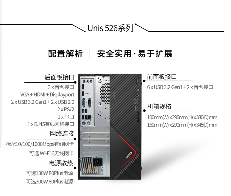 • 商品名稱:紫光 Unis 526T A062 商用辦公臺式機電腦整機 集成顯卡 intel( i3-10100 8G 256G SSD/180W /8L)21.5英寸