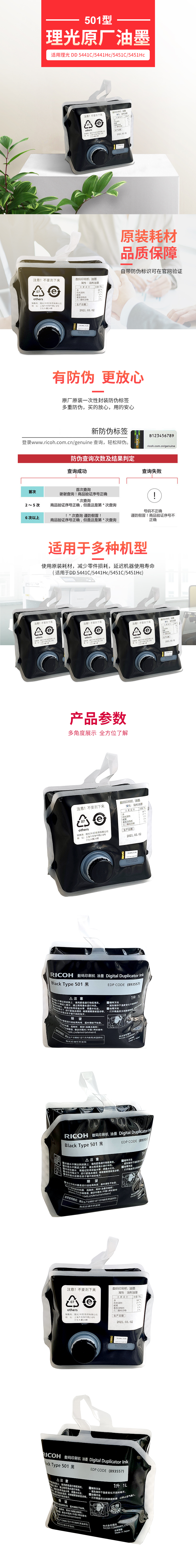• 商品名稱:理光(Ricoh)黑油墨 501型(1000cc/袋)適用于DD5440C/DD5450C/DD5441C/DD5451C