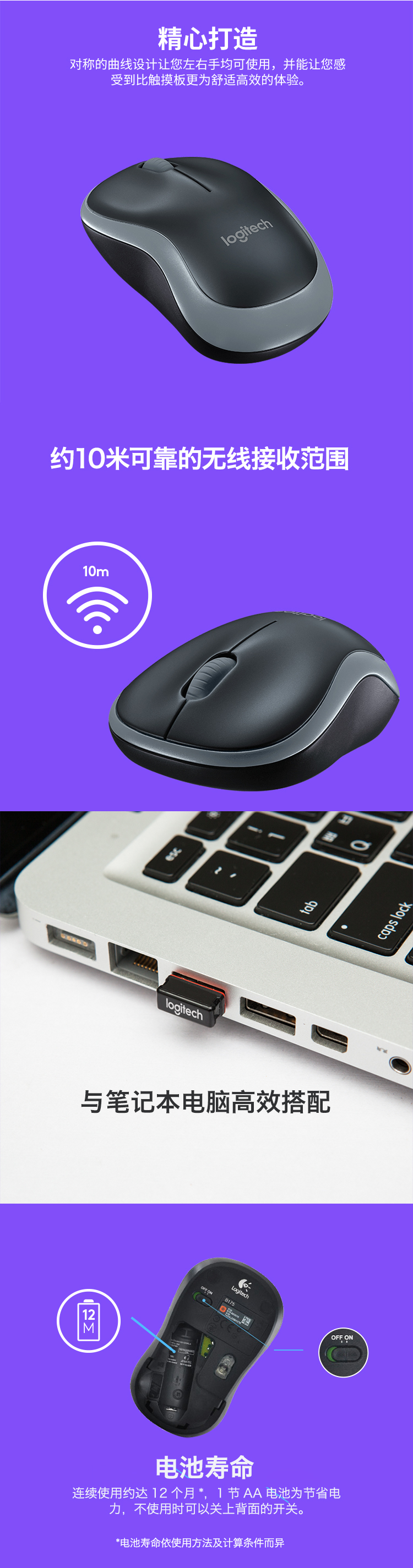 • 商品名稱:羅技(Logitech)無線鼠標(黑色) B175