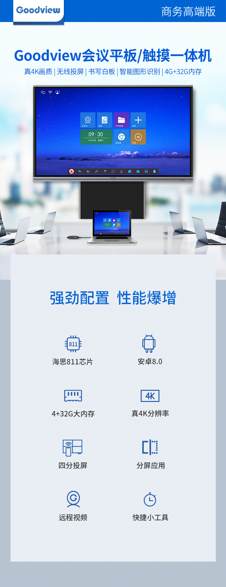 仙視(Goodview)65英寸智能會議平板遠程視頻會議系統(tǒng)教學一體機交互式電子白板GM65L1