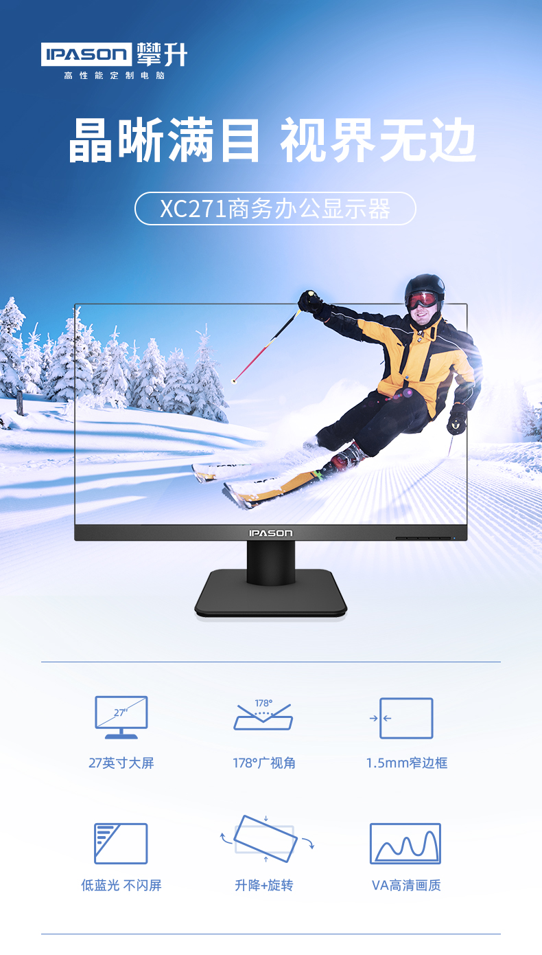 - 商品名稱:攀升/IPASON XC271 27英寸顯示器+可升降、旋轉(zhuǎn)+178度可視角度+HDMI*1 VGA*1 Audio*1+標配HDMI高清數(shù)據(jù)線+3年服務