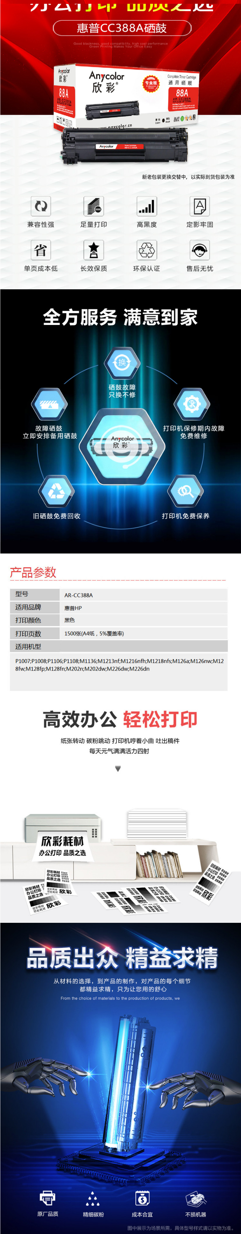 欣彩 88A AR-CC388A 專業(yè)版黑色硒鼓 印量約1500頁