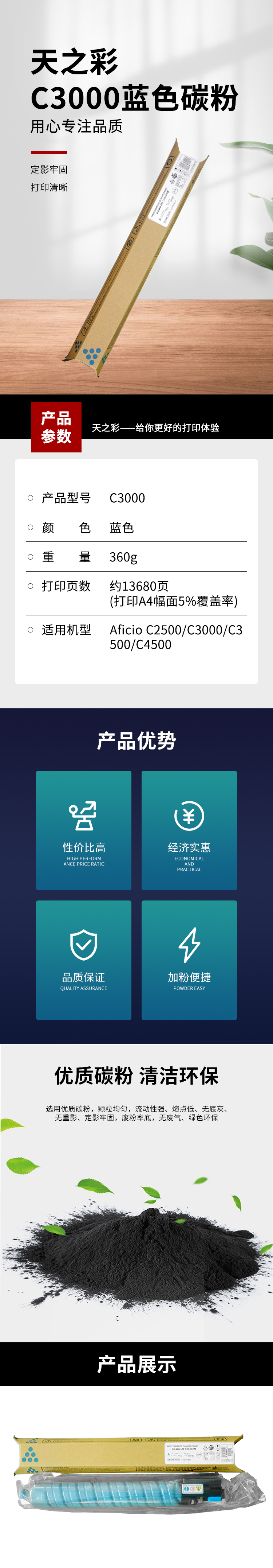 - 商品名稱:天之彩(Skyras)C3000 藍(lán)色墨粉 適用于C2500/C3000/C3500/C4500