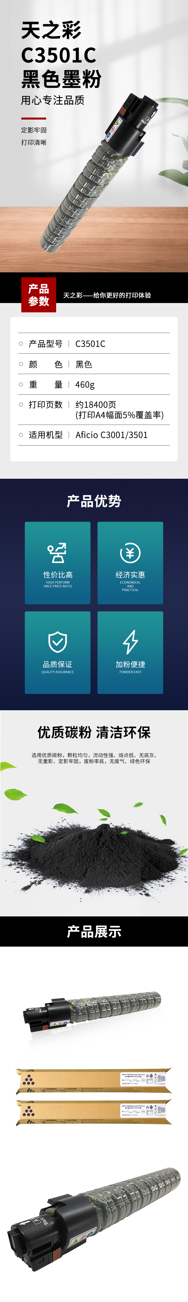 • 商品名稱:天之彩(Skyras)C3501 黑色墨粉 適用于Aficio C3001/C3501