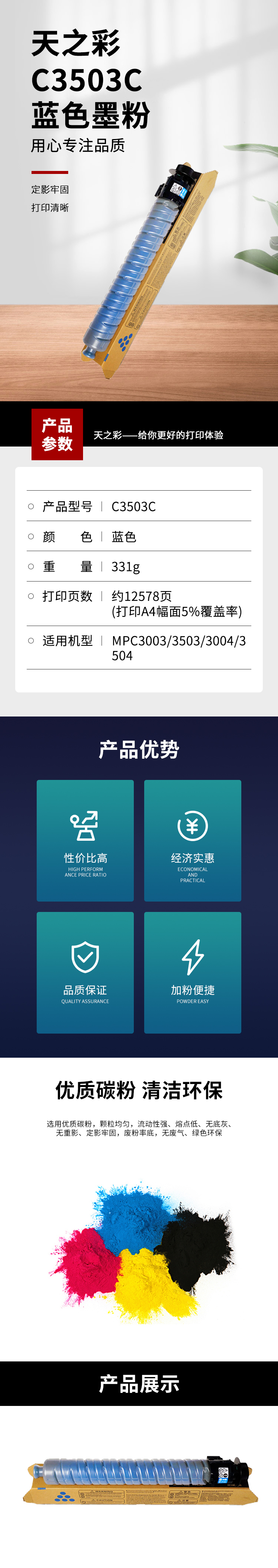• 商品名稱:天之彩(Skyras)C3503C 藍色墨粉 適用于理光C3003/C3503/C3004/C3504/ GES DSc1030