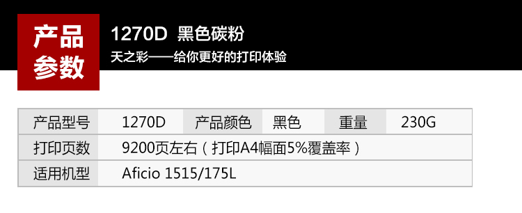• 商品名稱:天之彩(Skyras)1270D 黑色碳粉 印量約9200頁