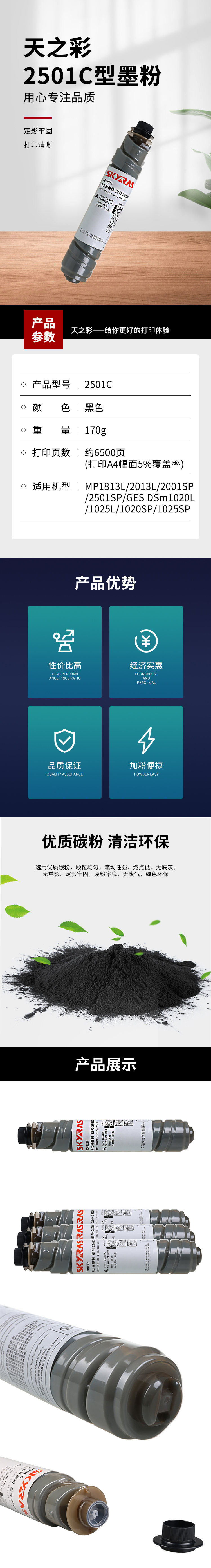 天之彩(Skyras)2501C 黑色墨粉 印量約6500頁