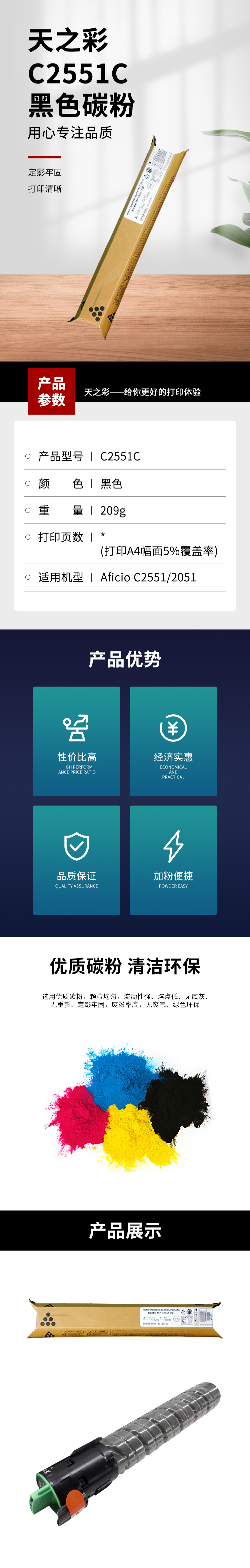 • 商品名稱:天之彩(Skyras)C2551C 黑色墨粉 適用于Aficio C2551/2051