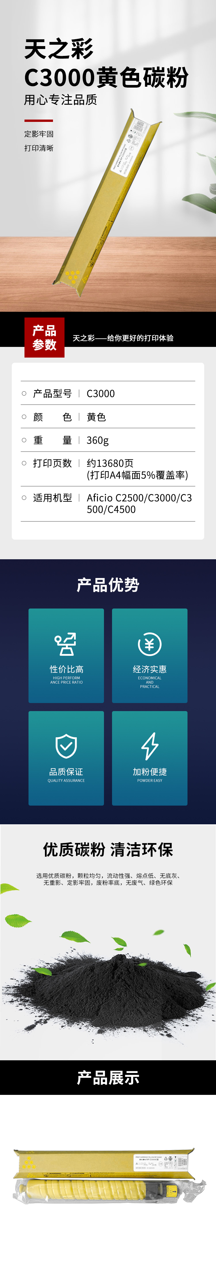 • 商品名稱:天之彩(Skyras)C3000 黃色墨粉 印量約13680頁