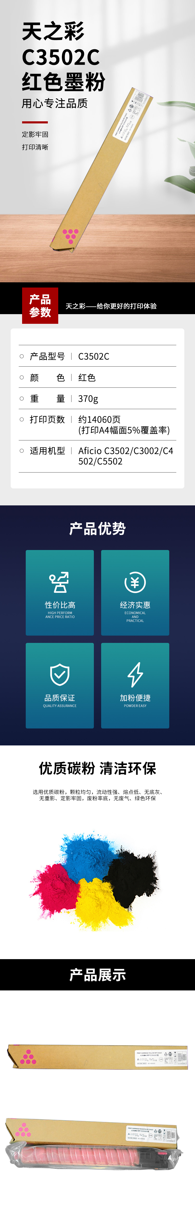• 商品名稱:天之彩(Skyras)C3502C 紅色墨粉 印量約14060頁