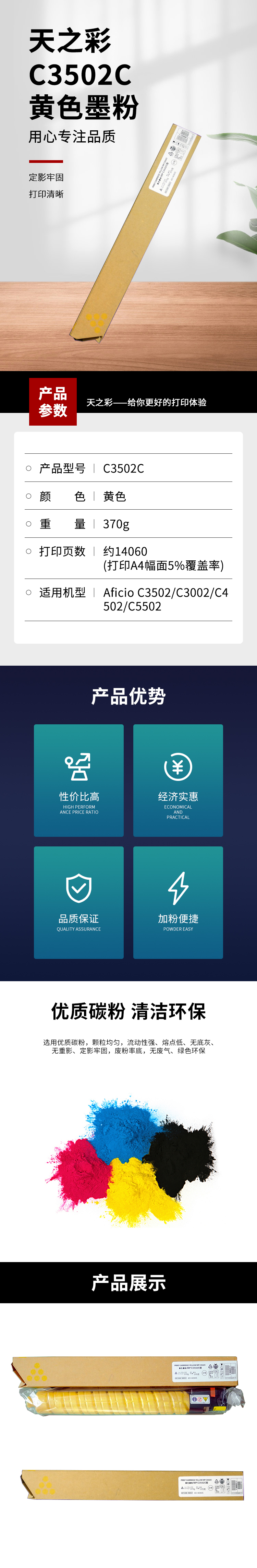 • 商品名稱:天之彩(Skyras)C3502C 黃色墨粉 印量約14060頁