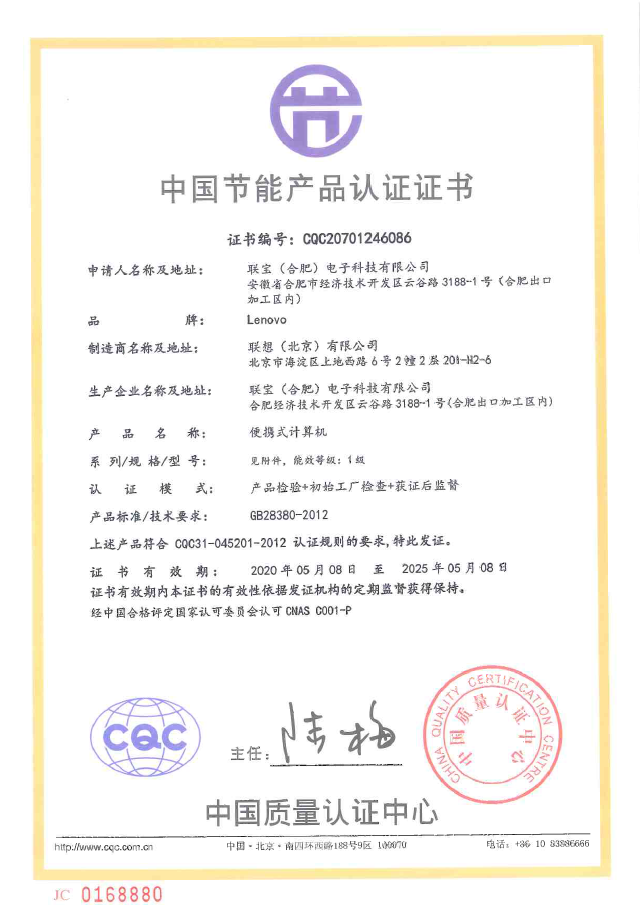• 節(jié)能產(chǎn)品證書(shū)編號(hào):CQC20701246086