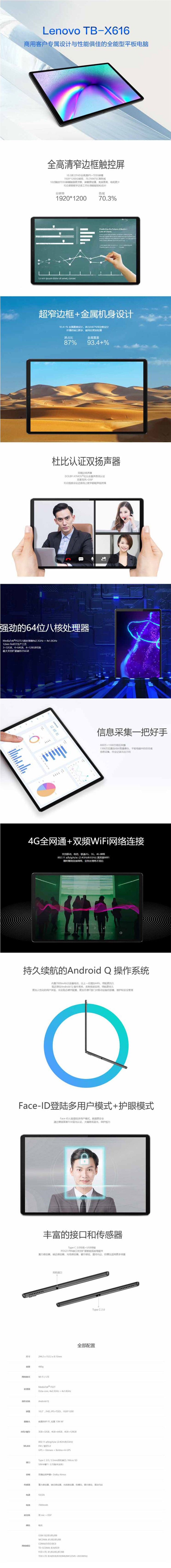 聯(lián)想(Lenovo)TB-X616F WIFI版 4+64 平板/ MediaTek? P22T Octa-core/ 4GB內(nèi)存/ 64GB/WIFI / 10.3英寸???1920x1200 FHD /8MP FF 前置攝像頭+13MP AF 后置攝像頭/2年保修