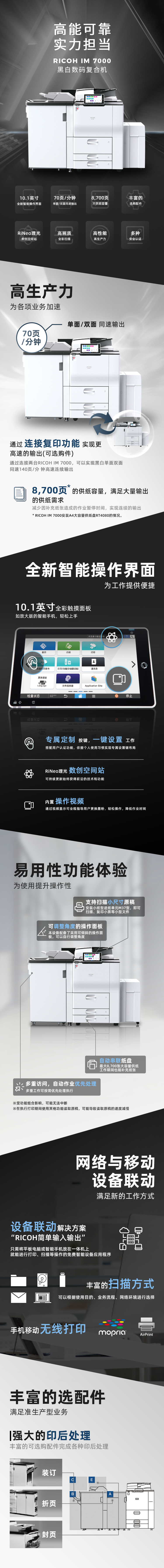 理光(Ricoh)IM 7000 A3黑色數(shù)碼復(fù)合機(jī) 高速打印復(fù)印掃描一體機(jī)