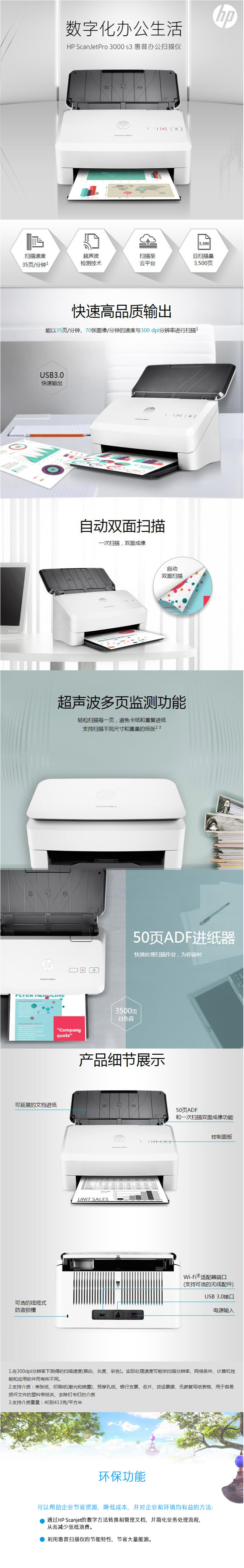 - 商品名稱:惠普(HP)ScanJet Pro 3000 s4 饋紙式掃描儀 自動(dòng)雙面 連續(xù)掃描 A4幅面