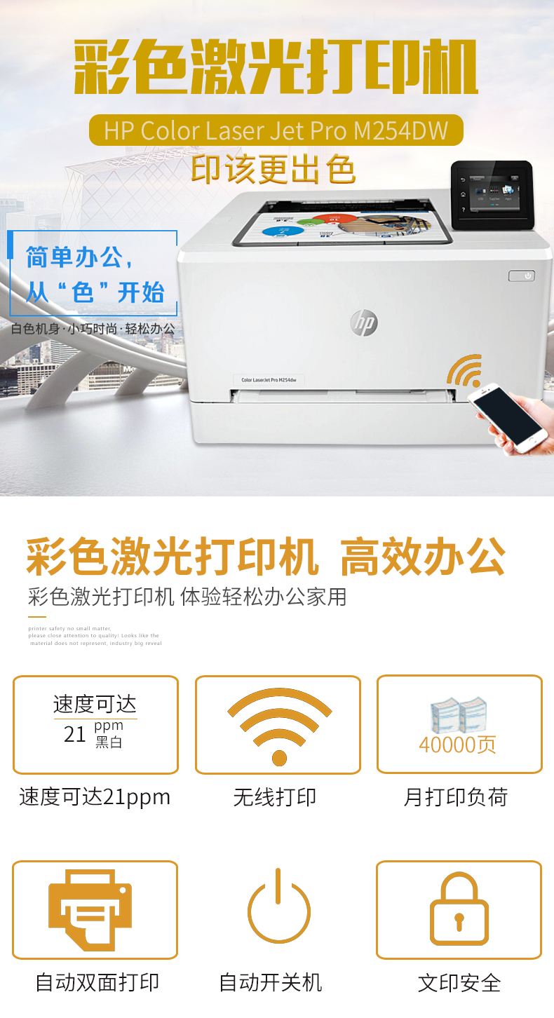 • 商品名稱:惠普(HP)Colour LaserJet Pro M254dw A4 彩色激光打印機(jī)