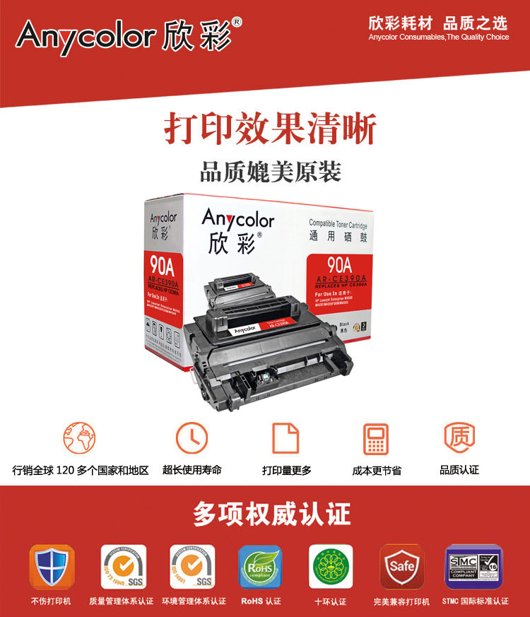 Anycolor欣彩AR-CE390A黑色硒鼓/墨粉盒適用惠普CE390A ,HP M4555/M455F
