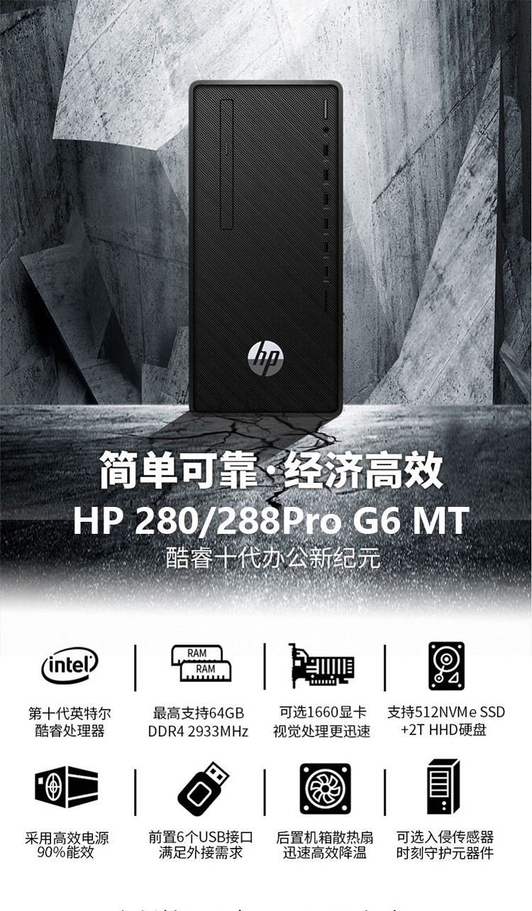 惠普 HP 288 Pro G6 Microtower PC-T902500005A 臺式計算機I3-10100/8G/256G SSD/集顯/無光驅(qū)/23.8寸/神州網(wǎng)信WIN10政府版/三年保修