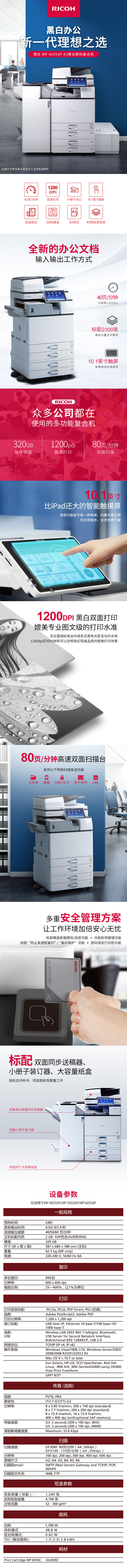 - 商品名稱:理光(Ricoh)MP 4055SP A3黑白數(shù)碼多功能一體機(jī) 標(biāo)配含雙面輸稿器+四紙盒+1000頁有釘/無釘方式混合裝訂器