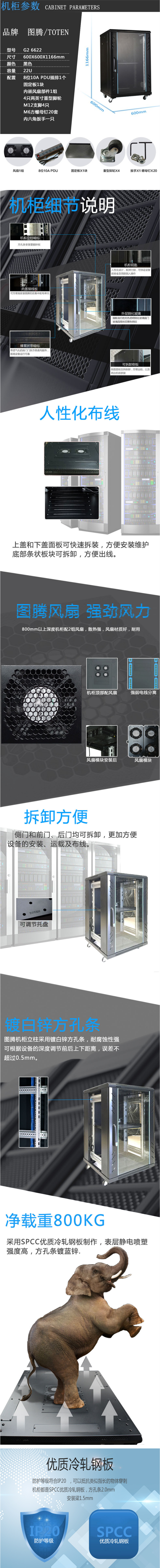 圖騰(TOTEN) 圖騰22U UPS機柜G26622(含交換機、KVM附件套裝)