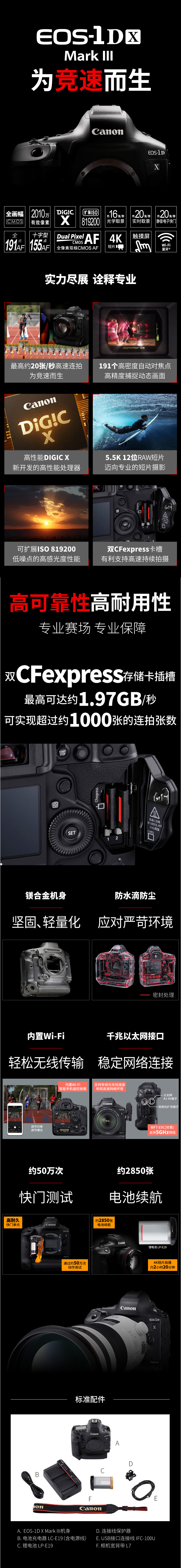 • 商品名稱:佳能(Canon)EOS-1D X Mark III 1DX3全畫幅單反相機(jī) (含EF 70-200mm f/2.8L IS III USM +EF 11-24mm f/4L USM )