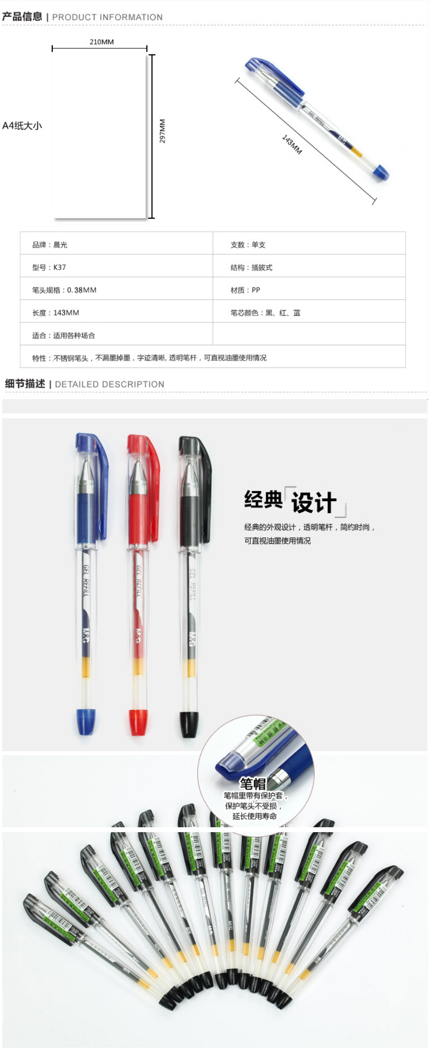 晨光K37中性性筆 0.38mm 黑色(12支/盒 )