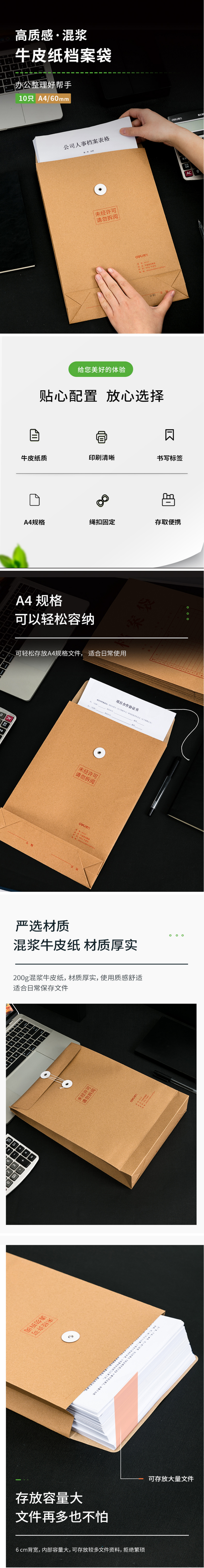 • 商品名稱:得力 64101 A4混漿200g牛皮紙檔案袋 20只