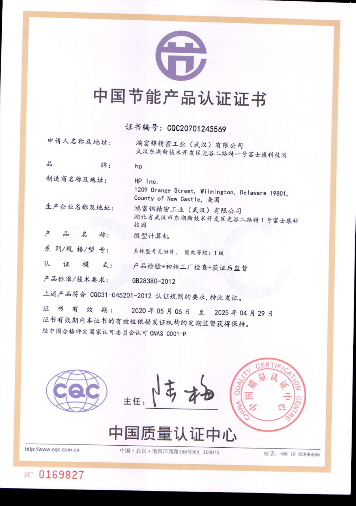 • 節(jié)能產(chǎn)品證書編號:CQC20701245569