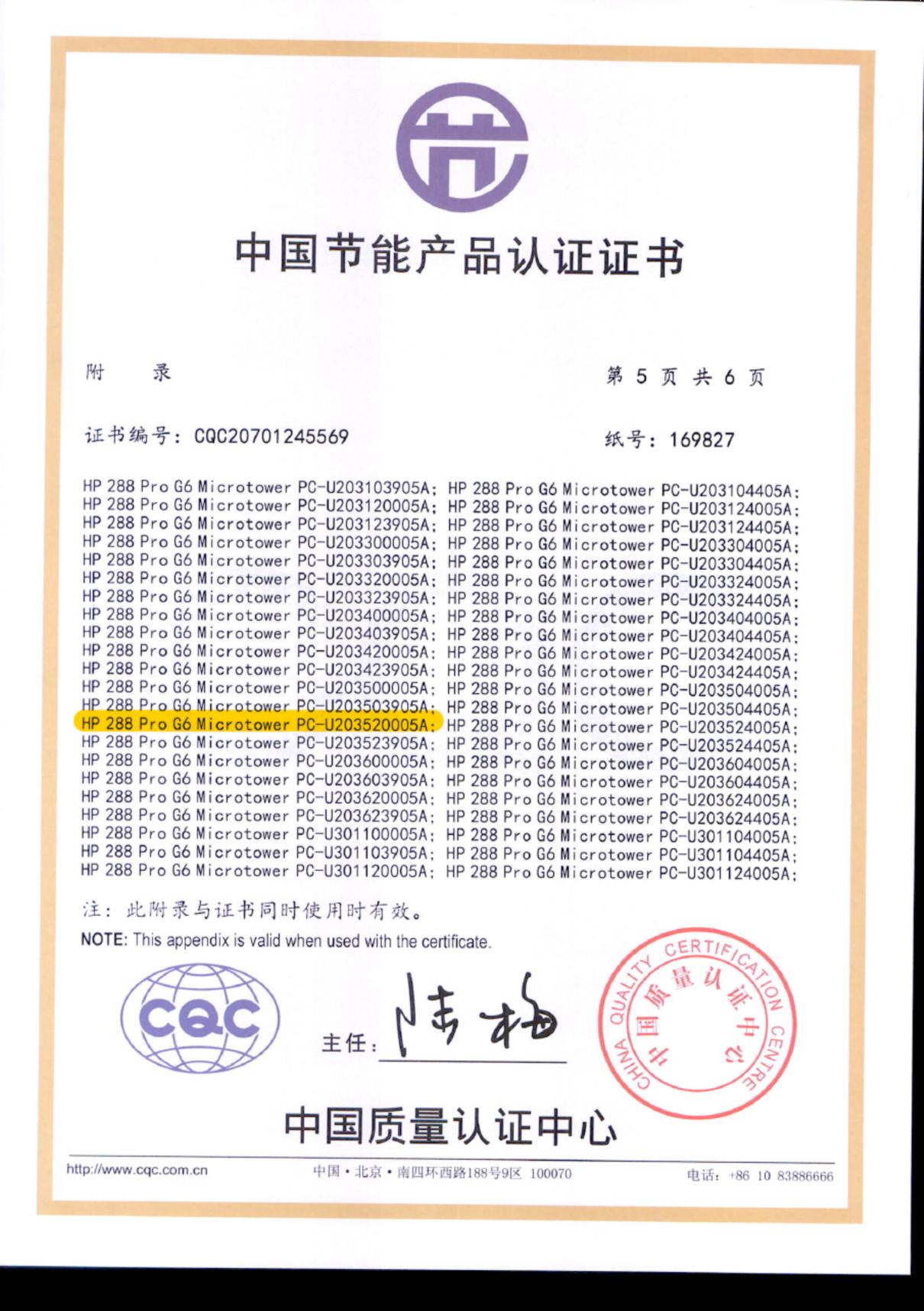• 型號:HP 288 Pro G6 Microtower PC-U203520005A